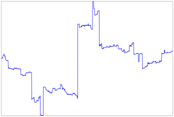 A Cauchy process sample path. This is an example of a 1-stable purely discontinuous Lévy process with infinite variation on every nontrivial time interval.